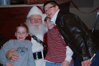 Mon, we went to see the tree lighting in Draper at the city hall. Brittons choir group sang and was so cute! we saw the most delightful Santa I swear he was the real one!! he chatted and laughed with my kids for at least 3 min, he didn't seem to be in a rush! He told Tanner that he loved him and to be good in school, and that he was truly a wonderful little boy, I did start to tear up alittle, I don't know if it was from truly being touched or from holding back my laughter cause Tanner was a little stinker in school that day and got a naughty note sent home with him, (with things to work on).